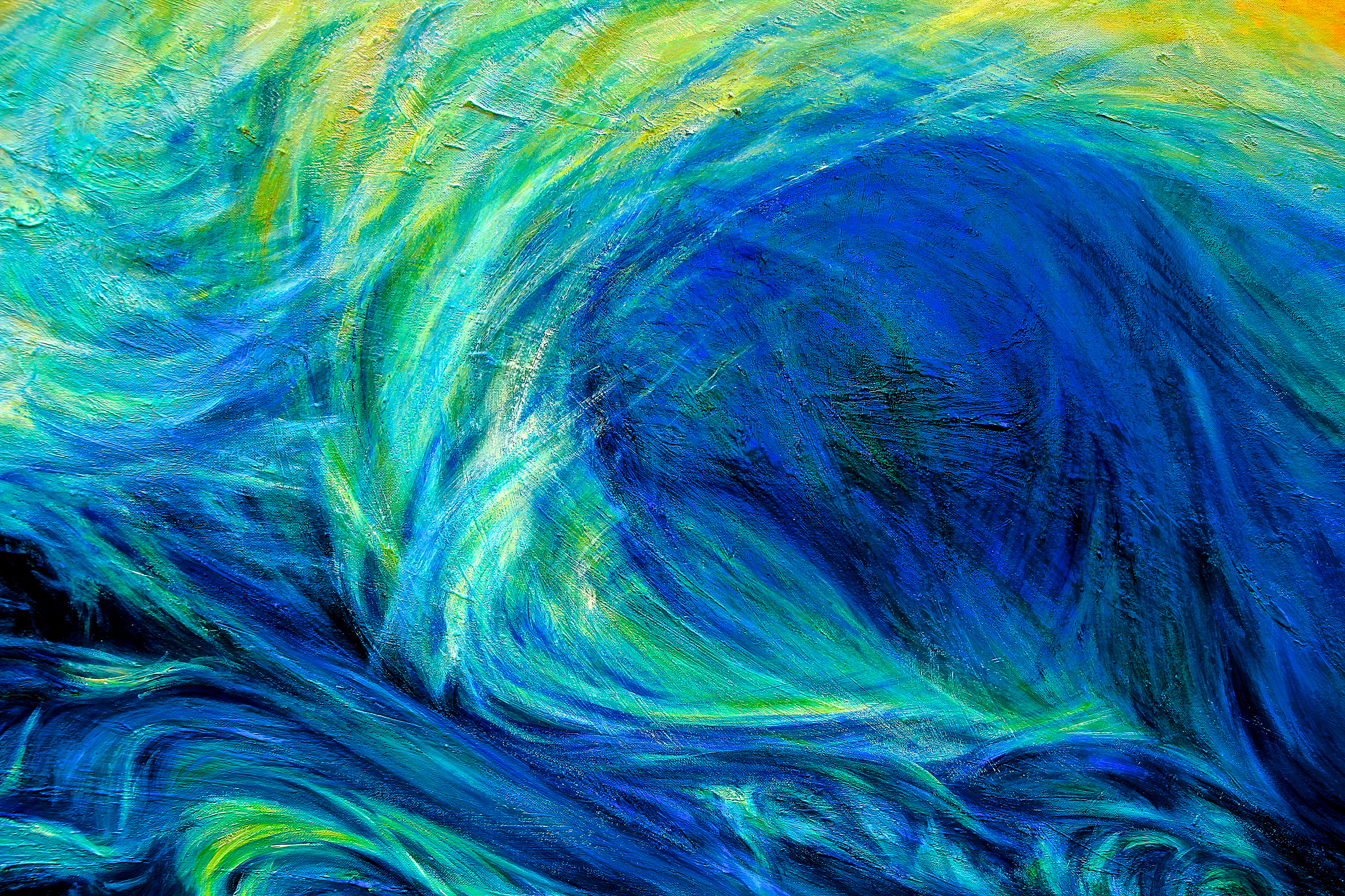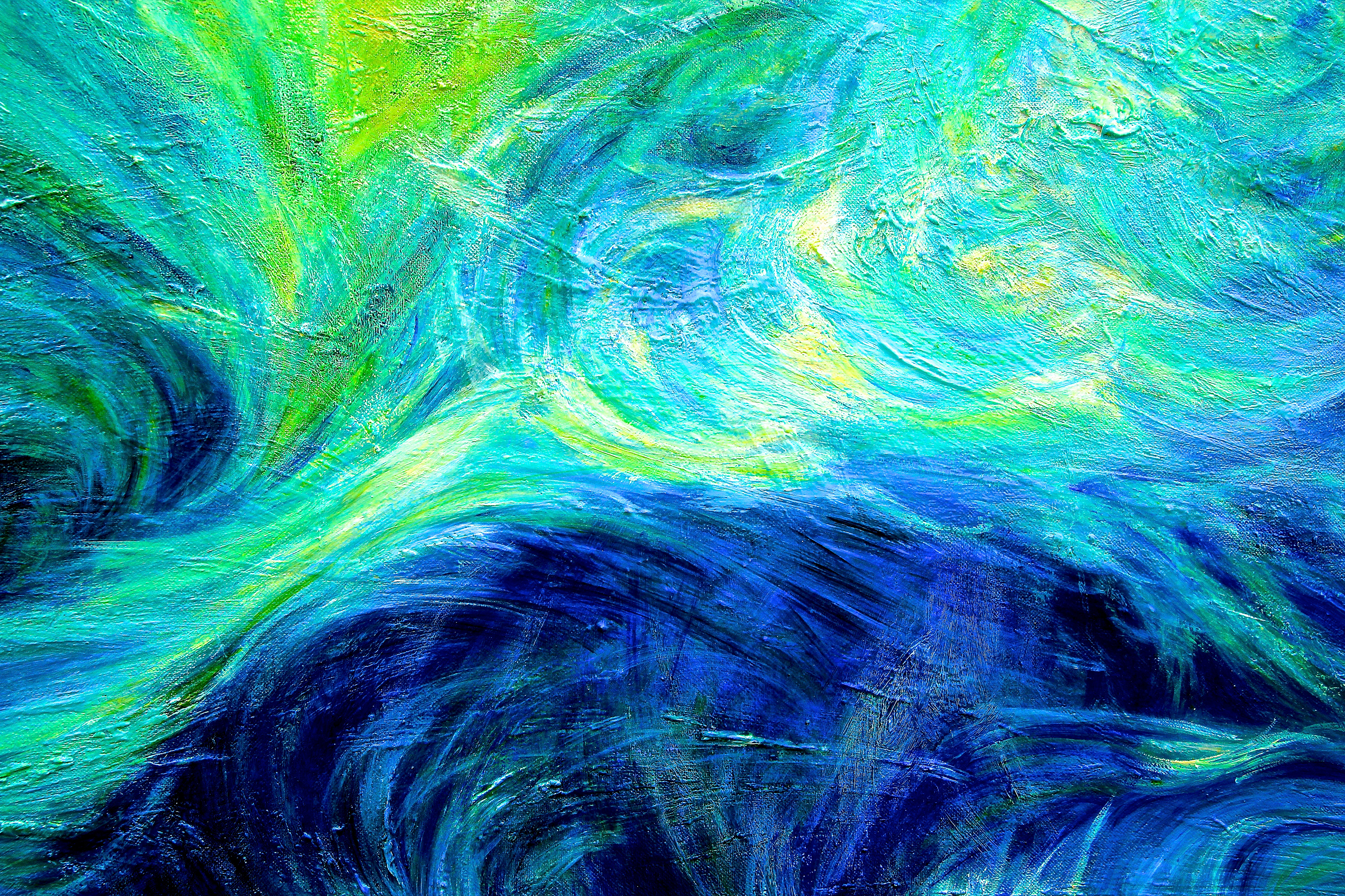 The technique of "Impasto" (undiluted oil painting applied directly to the canvas) producing abundant texture, and the force of the turquoise blue brushstroke, are fundamental characteristics of this work.