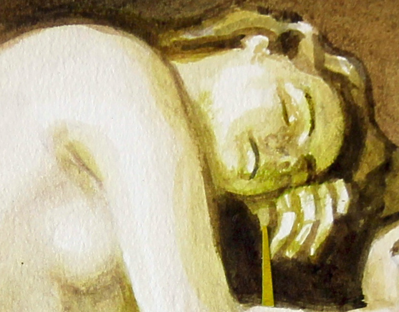 Newton's theory of the force of attraction or Gravity is challenged by Bacchus' idyllic drink and its crimson red, while both continue to be immersed in a surreal universe.