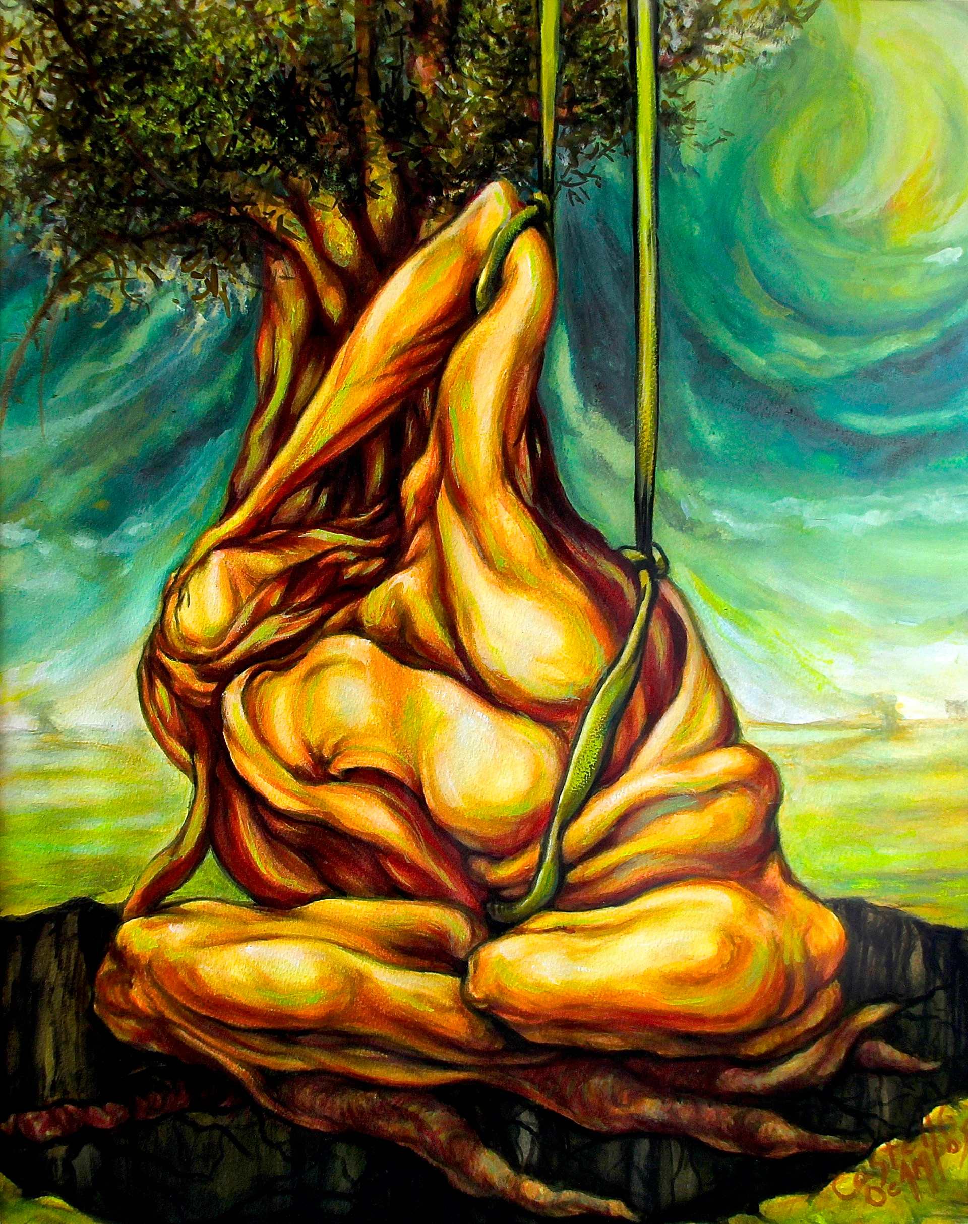 This watercolor comes from a series called "Uprooted" inspired by the extraction of olive trees to be sold, as well as the construction of buildings ignoring the nature of the environment.
